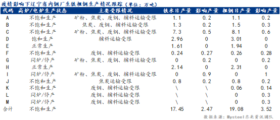 受近期東北地區(qū)疫情形勢(shì)嚴(yán)峻、管控整體偏嚴(yán)影響,遼寧省內(nèi)物流運(yùn)輸受影響較大,特別在跨市運(yùn)輸方面,由于各市管控政策不一、正常運(yùn)營(yíng)的貨車(chē)數(shù)量稀少,大宗商品資源流動(dòng)性整體較差。我的鋼鐵網(wǎng)調(diào)研了遼寧省內(nèi)10家長(zhǎng)流程(高爐)鋼廠和3家短流程(電弧爐)鋼廠,僅兩家鋼廠正常生產(chǎn),有4家鋼廠由于原料運(yùn)輸不暢、已進(jìn)入悶爐或停產(chǎn)狀態(tài),另有7家鋼廠遭受不同程度的影響。