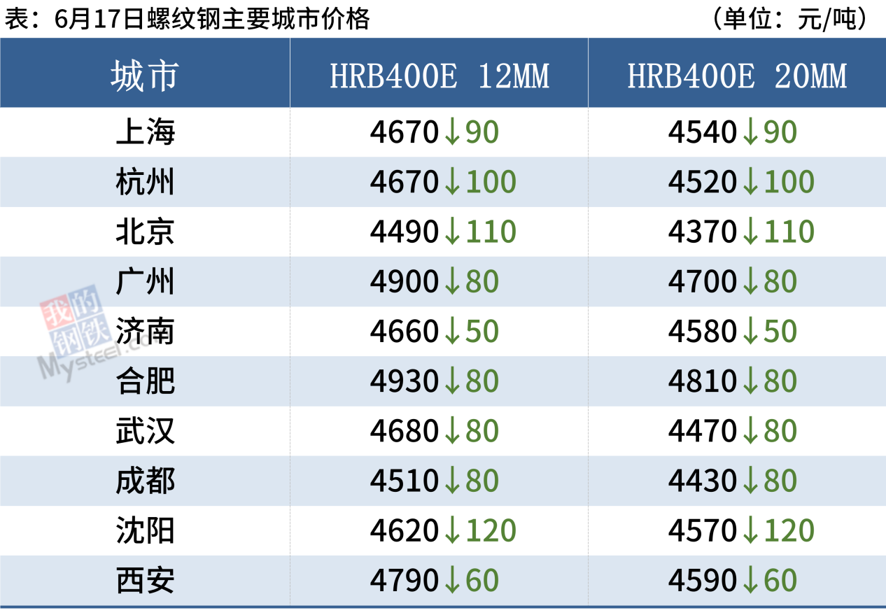 6月17日,國內(nèi)鋼材市場下跌,唐山遷安鋼坯出廠價格報4180元/噸。成交方面,由于午后期貨進(jìn)一步下挫,商家心態(tài)低迷,終端采購積極性較差,全天成交量明顯下滑。