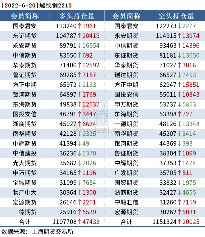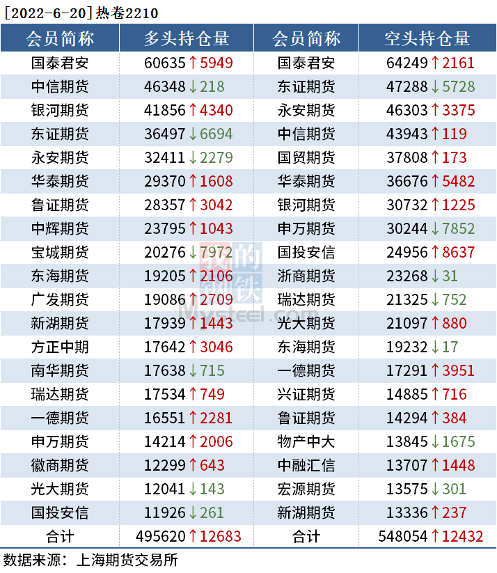 截至6月20日收盤(pán),螺紋鋼2210收4149元/噸,跌5.98%;熱卷2210收4220元/噸,跌6.53%;鐵礦石2209收746元/噸,跌10.98%。