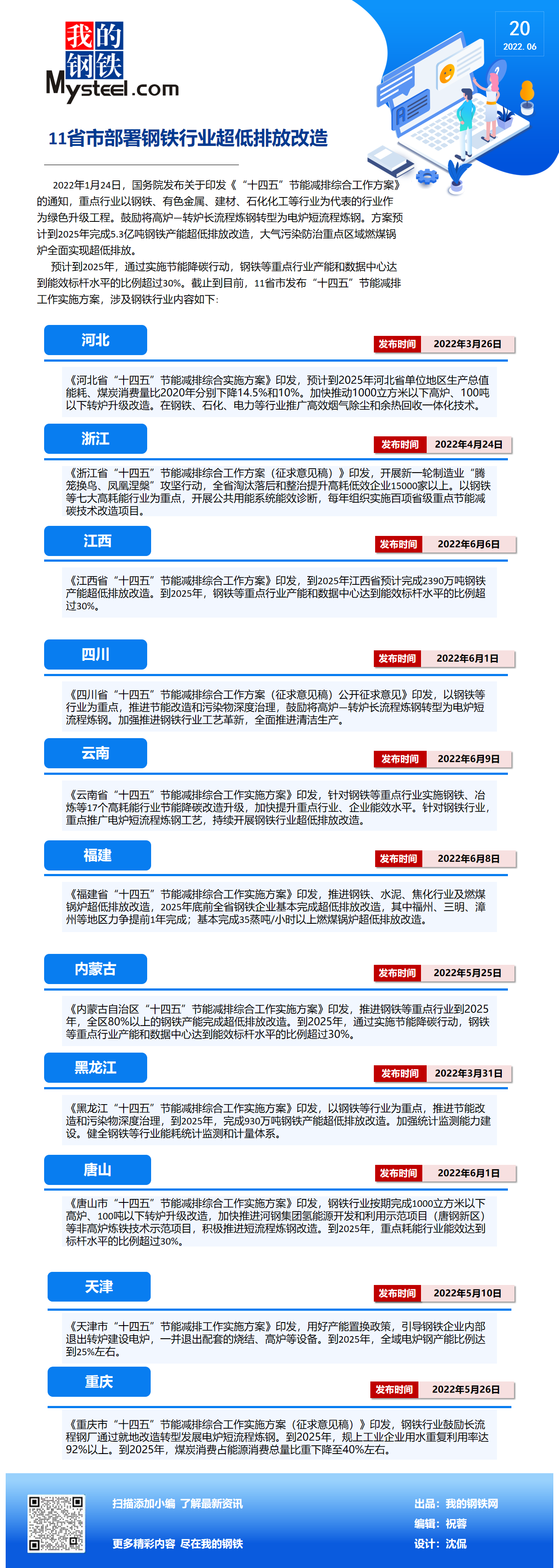 預(yù)計(jì)到2025年,通過實(shí)施節(jié)能降碳行動(dòng),鋼鐵等重點(diǎn)行業(yè)產(chǎn)能和數(shù)據(jù)中心達(dá)到能效標(biāo)桿水平的比例超過30%。截止到目前,11省市發(fā)布“十四五”節(jié)能減排工作實(shí)施方案,涉及鋼鐵行業(yè)內(nèi)容如下: