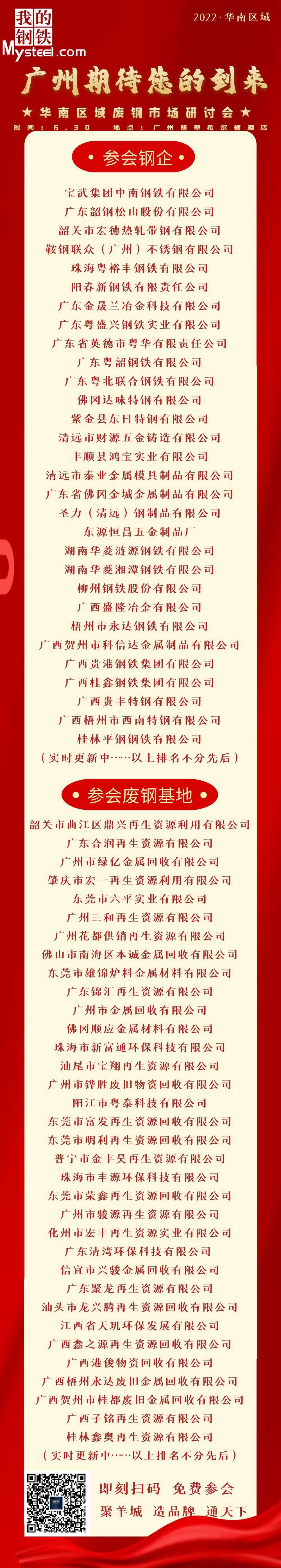 2022廢鋼全國行·華南區(qū)域廢鋼市場研討會。由上海鋼聯(lián)電子商務(wù)股份有限公司主辦、韶關(guān)市曲江區(qū)鼎興再生資源利用有限公司聯(lián)合主辦,中國廢鋼鐵應(yīng)用協(xié)會指導,江蘇華宏科技股份有限公司、湖北力帝機床股份有限公司、江蘇大圣博環(huán)保科技股份有限公司共同協(xié)辦,臨沂朱氏偉業(yè)再生資源設(shè)備有限公司白金贊助,江陰市宏力液壓科技有限公司黃金贊助的“2022廢鋼全國行·華南區(qū)域廢鋼市場研討會”將于2022年6月30日在廣州黃埔區(qū)翡翠希爾頓舉行,我們誠摯地邀請您出席本次會議。