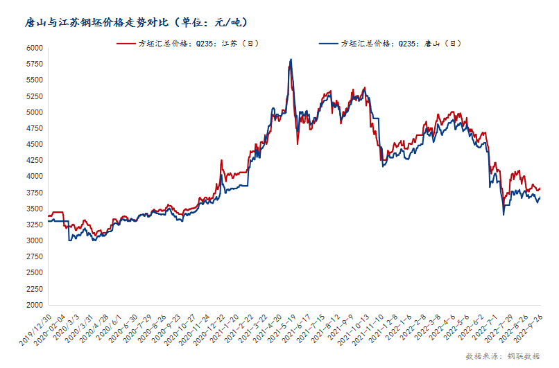 圖3:唐山與江蘇鋼坯價格走勢對比