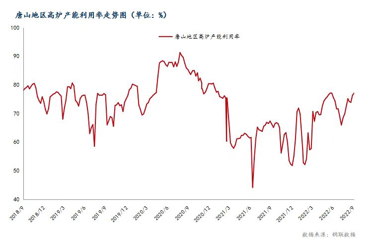 圖4:唐山地區(qū)高爐產(chǎn)能利用率走勢圖