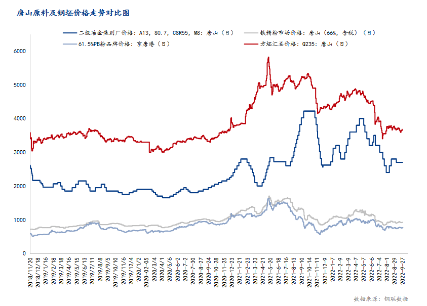 圖6:唐山原料及鋼坯價格走勢對比圖