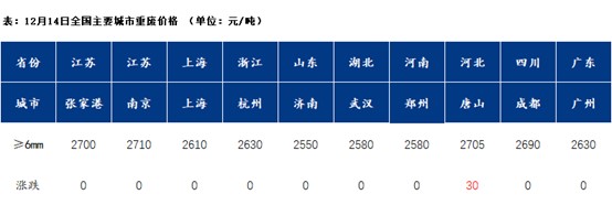 14 日國內(nèi)主要鋼材品種價(jià)格漲跌互現(xiàn),其中螺紋鋼均價(jià)較上一交易日價(jià)格上漲3元/噸:中厚板均價(jià)較上一交易日價(jià)格保持不變;角鋼均價(jià)較上一交易日價(jià)格下跌 11 元/噸;槽鋼均價(jià)較上一交易日下跌 11 元/噸。具體來看,早盤期鋼窄幅震蕩運(yùn)行,上午國內(nèi)鋼材價(jià)格主流持穩(wěn)。成交方面,早盤成交情況整體一般,午后隨著期鋼拉升,市場剛需成交有所好轉(zhuǎn),低價(jià)資源逐步消失,成交價(jià)格小幅跟隨上漲,全天成交好于上一交易日。在淡季背景下,市場呈現(xiàn)供需雙降的格局,疊加貿(mào)易商冬儲的積極性不是很高,因此預(yù)計(jì)短期國內(nèi)鋼材價(jià)格將延續(xù)窄幅震蕩運(yùn)行態(tài)勢。