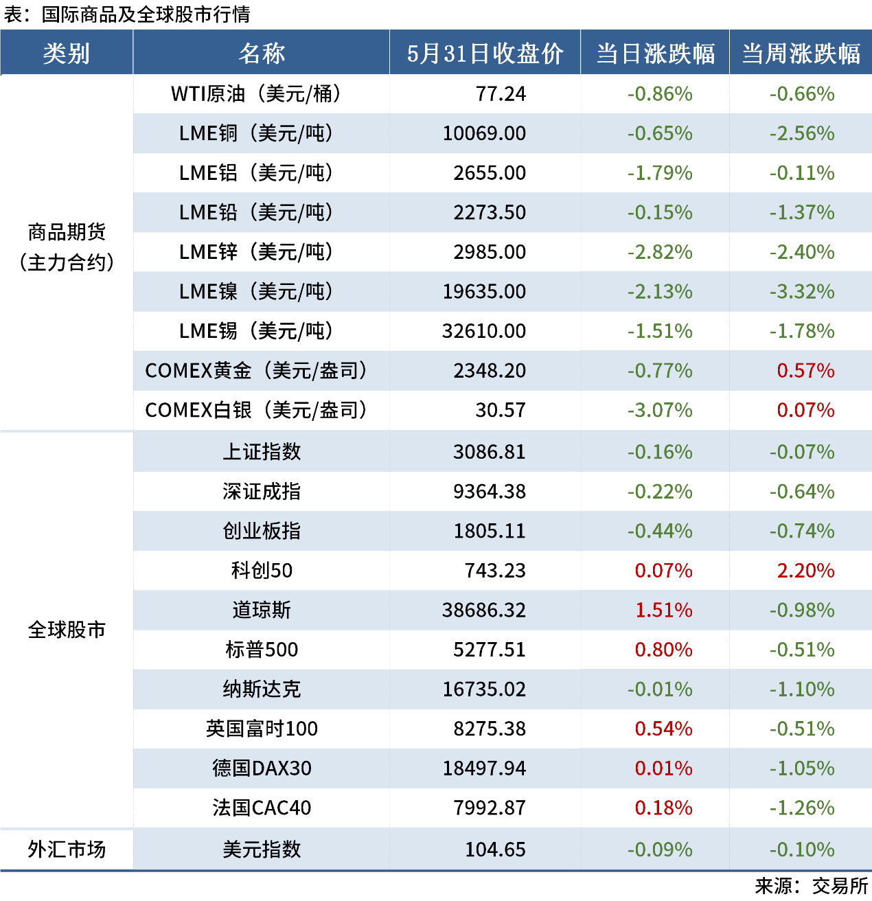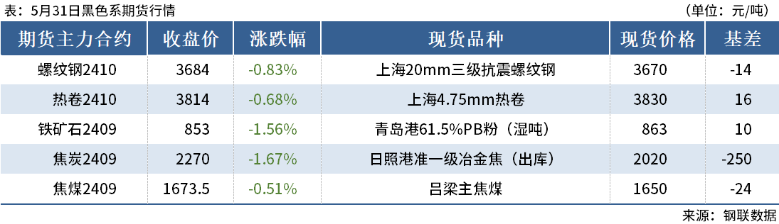 ◎ 5月31日,全國(guó)主港鐵礦石成交88.70萬(wàn)噸,環(huán)比減3.8%;237家主流貿(mào)易商建筑鋼材成交11.62萬(wàn)噸,環(huán)比增3.9%。