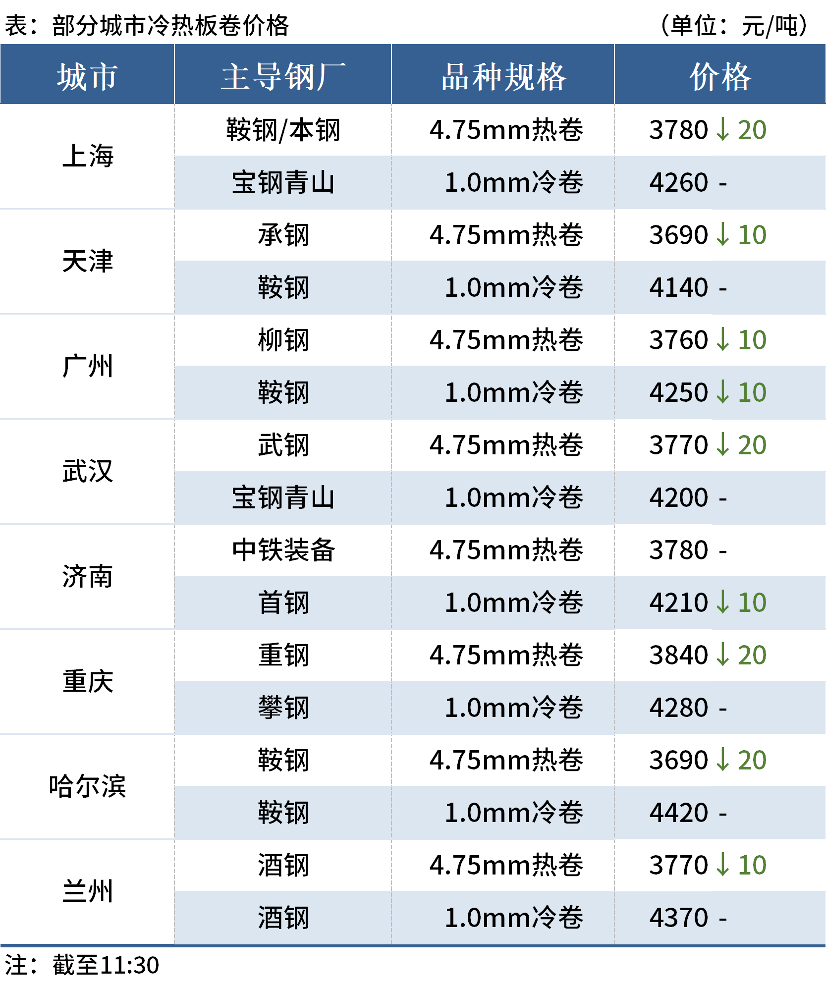 ◎天津:17日早盤(pán)冷軋市場(chǎng)價(jià)格持穩(wěn),新天鋼薄板4140首鋼4140包鋼4090河鋼唐鋼4120。(單位:元/噸)