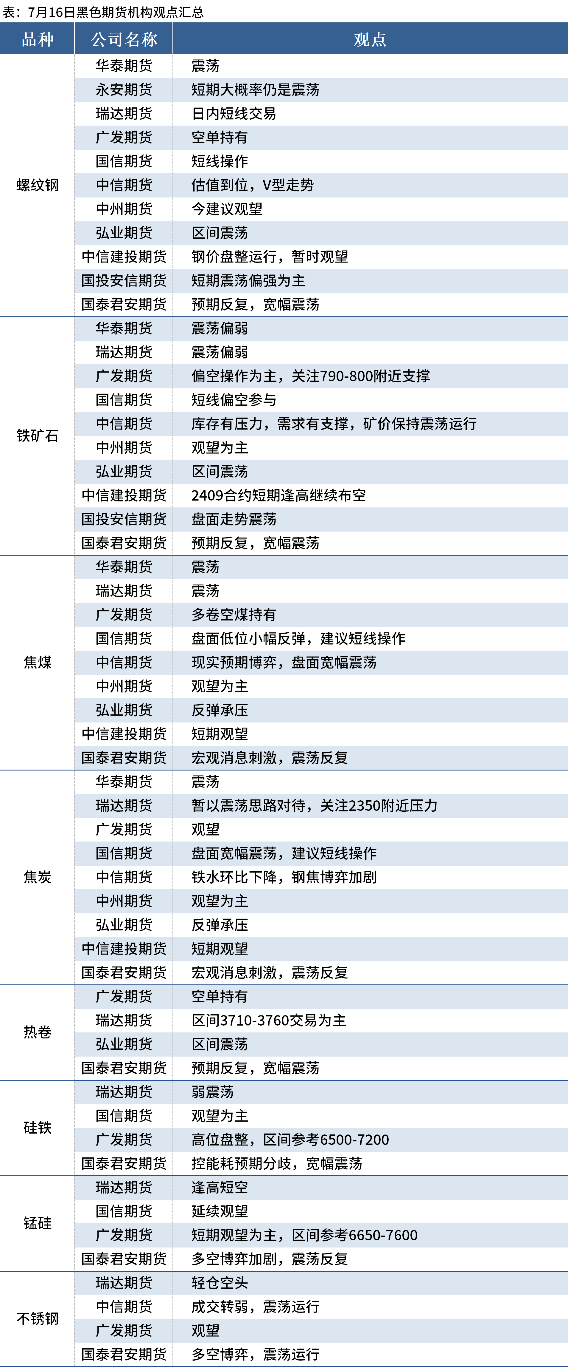 據(jù)Mysteel統(tǒng)計(jì)7月16日11家期貨機(jī)構(gòu)操作策略,其中多數(shù)機(jī)構(gòu)料螺紋鋼震蕩運(yùn)行,鐵礦石震蕩偏弱,焦煤、焦炭震蕩運(yùn)行。具體匯總內(nèi)容如下: