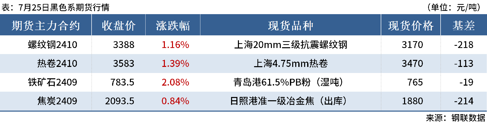 ◎7月25日,全國主港鐵礦石成交106.49萬噸,環(huán)比增5.6%;237家主流貿(mào)易商建筑鋼材成交8.57萬噸,環(huán)比減14.5%。
