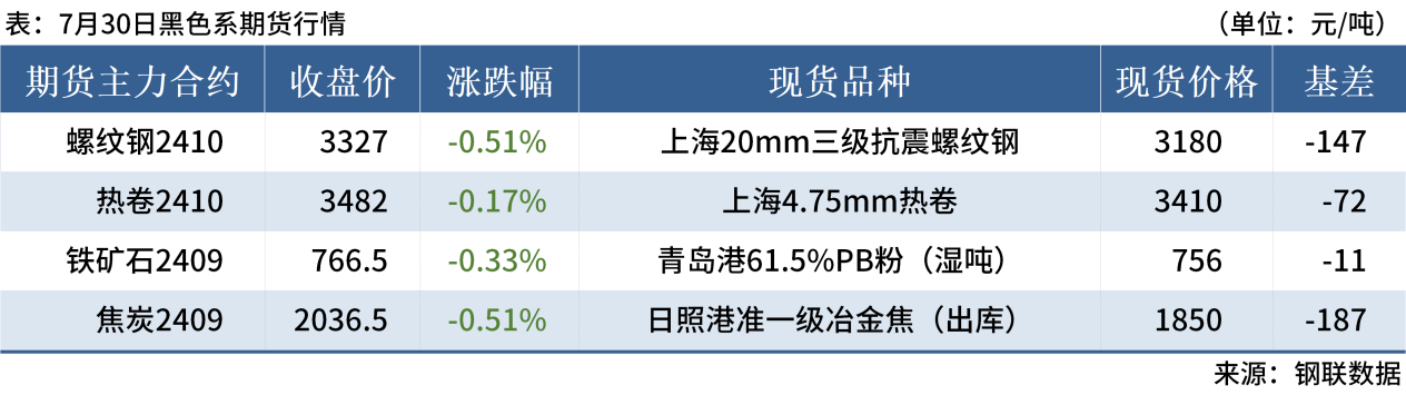 ◎ 7月30日,全國主港鐵礦石成交98.67萬噸,環(huán)比減19.9%;237家主流貿(mào)易商建筑鋼材成交9.42萬噸,環(huán)比減26%。