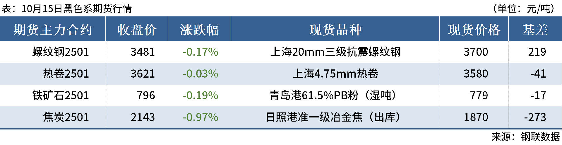 ◎10月15日,全國主港鐵礦石成交96.11萬噸,環(huán)比減3%;237家主流貿(mào)易商建筑鋼材成交10.14萬噸,環(huán)比減23.8%。