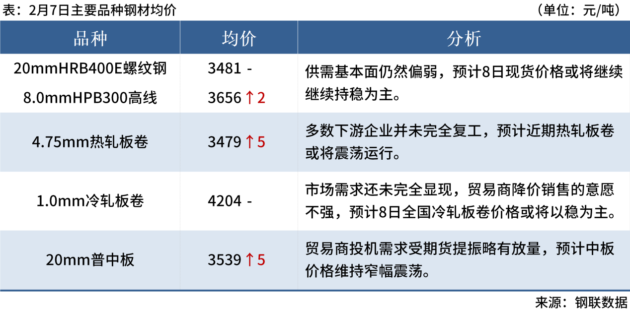 ◎ 據(jù)調(diào)研,春節(jié)期間有90家獨(dú)立電弧爐鋼廠停產(chǎn),截至2月7日已復(fù)產(chǎn)鋼廠有4家。剩余86家復(fù)產(chǎn)鋼廠中,正月初十至元宵節(jié)(含)之間復(fù)產(chǎn)的鋼廠最多有39家。相較2024年,元宵節(jié)前復(fù)產(chǎn)的鋼廠增加了24家,電弧爐鋼廠生產(chǎn)積極性大幅提升。詳情>>