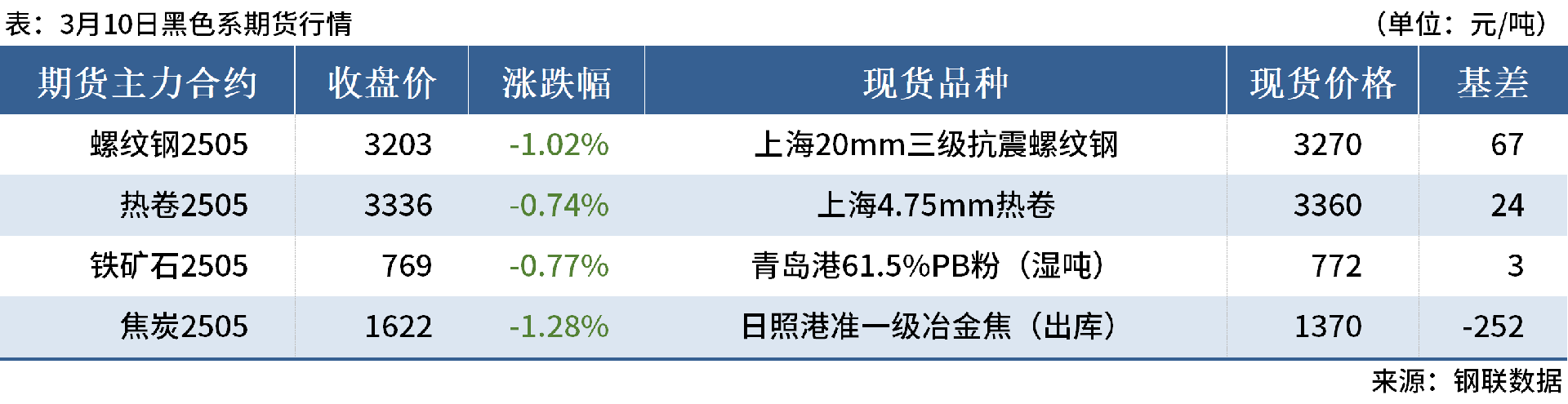 ◎3月10日,全國(guó)主港鐵礦石成交67.00萬(wàn)噸,環(huán)比減9.8%;237家主流貿(mào)易商建筑鋼材成交8.89萬(wàn)噸,環(huán)比減1.3%。
