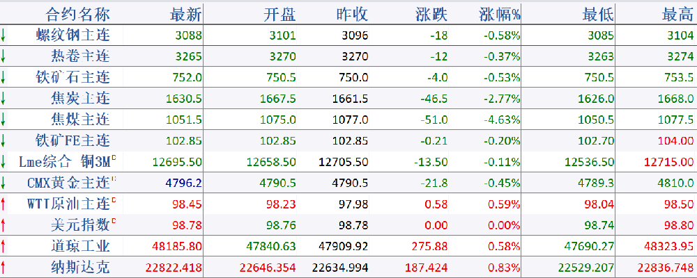 黑色系商品夜盤(pán)總體收跌,其中主力焦煤跌4.63%,焦炭跌2.77%,鐵礦石跌幅放緩為0.53%,螺紋、熱卷分別跌0.58%和0.37%。焦煤自上一個(gè)交易日破位下跌后,空頭勢(shì)能增強(qiáng),夜盤(pán)跌幅擴(kuò)大繼續(xù)拖累鋼材,目前看,對(duì)鋼材的負(fù)反饋?zhàn)饔脹](méi)有結(jié)束。鐵礦石外盤(pán)穩(wěn)定在102美金附近,鐵水產(chǎn)量回升對(duì)礦價(jià)有一定支撐,短期需要關(guān)注原料走弱背景下鋼價(jià)補(bǔ)跌的壓力。