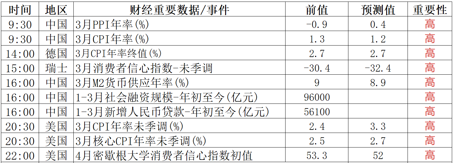 財(cái)經(jīng)重要數(shù)據(jù)/事件一覽